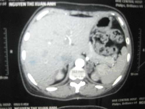 CTscan 64 nhát cắt thuyến thượng thận hình ảnh u tuyến thượng thận T kích thước 3x2cm
