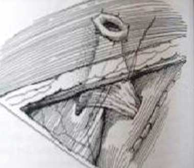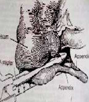 - cắt thêm 1 mảnh manh tràng rồi cuốn ống, hoặc dùng stappler làm tăng chiều dài ruột thừa. (Nguồn:Benson & Olson(1) Woodhouse(10))