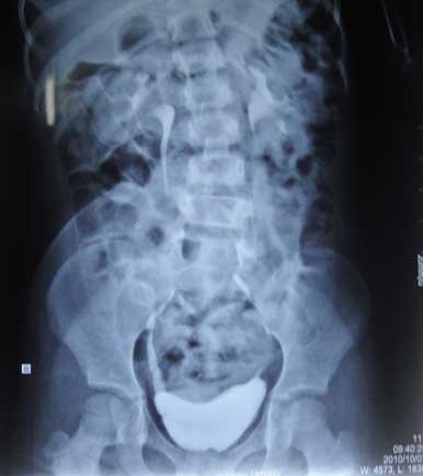 Bệnh nhân nhi, nữ,7 tuổi ở Nhan Biều- Triệu Thượng- Triệu Phong- Quảng Trị vào viện vì phát hiện tình cờ trong đợt khám sức khỏe từ thiện của đoàn CI, trẻ được đoàn chẩn đoán bệnh lý bàng quang thần kinh và được giới thiệu đến Bệnh Viện trường Đại Học Y- Dược Huế theo dõi và điều trị.